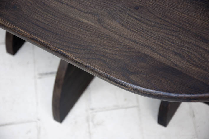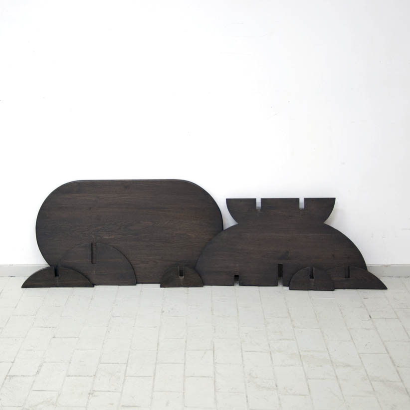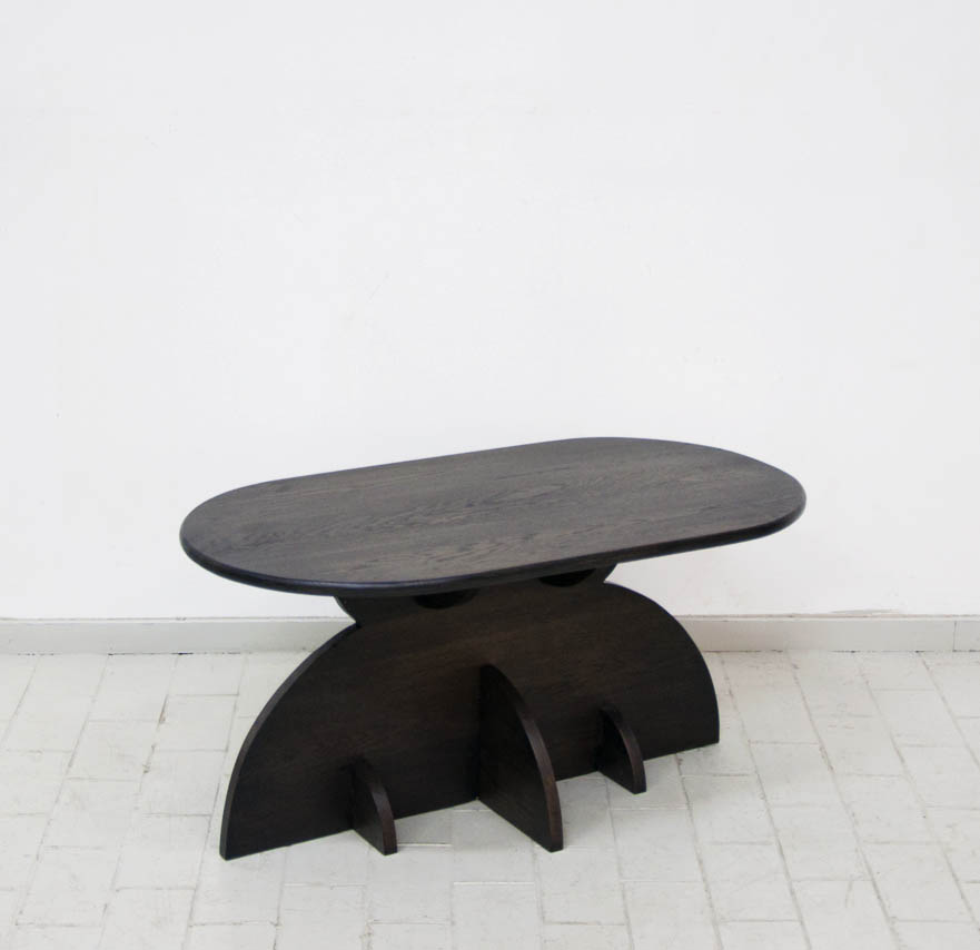 The sofa table is made from oak that is industrial waste which usually is burned. To easily ship it can be dis-assembled to be transported in a flat package, and easily be assembled with a handful of screws at home.