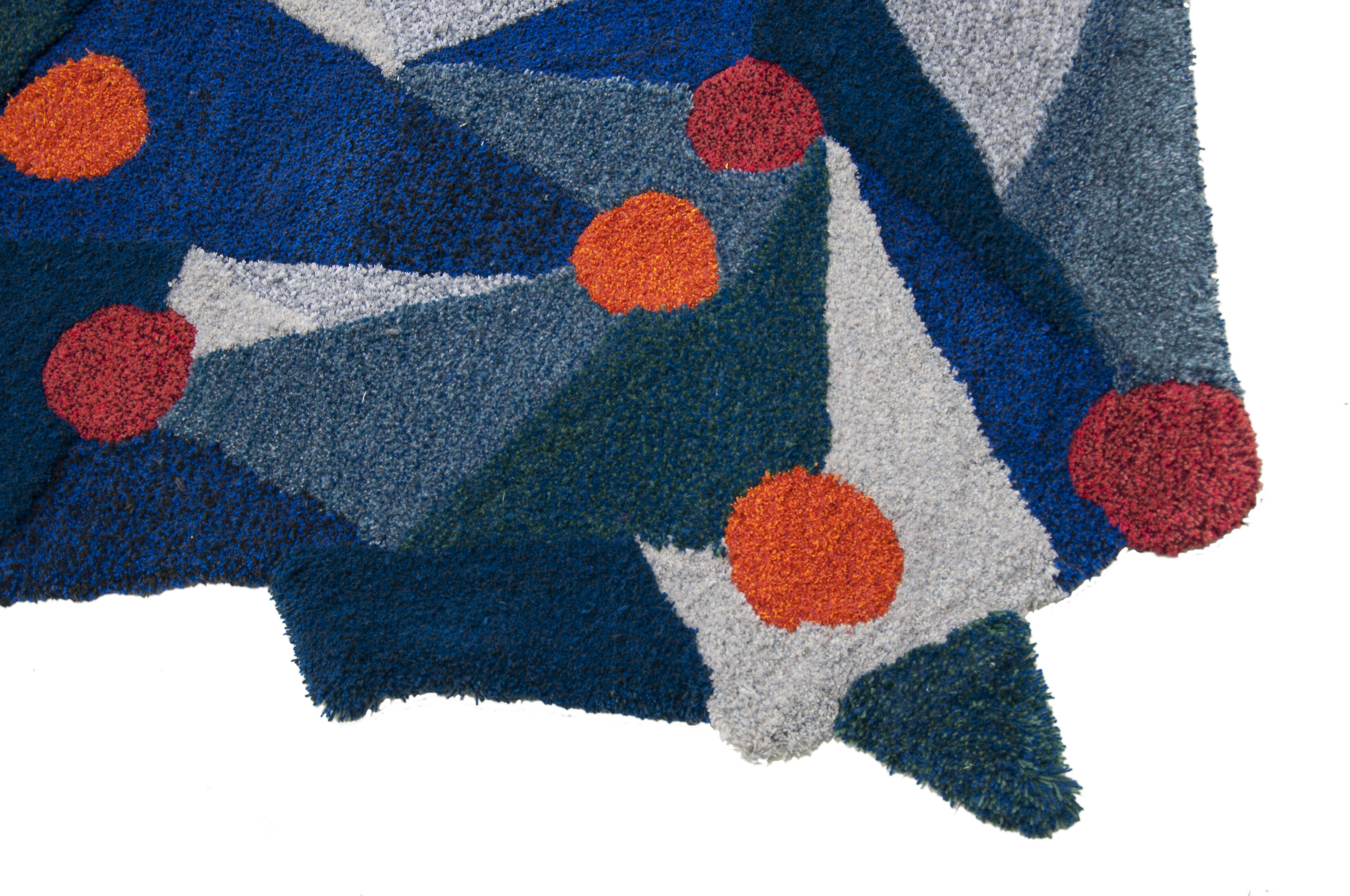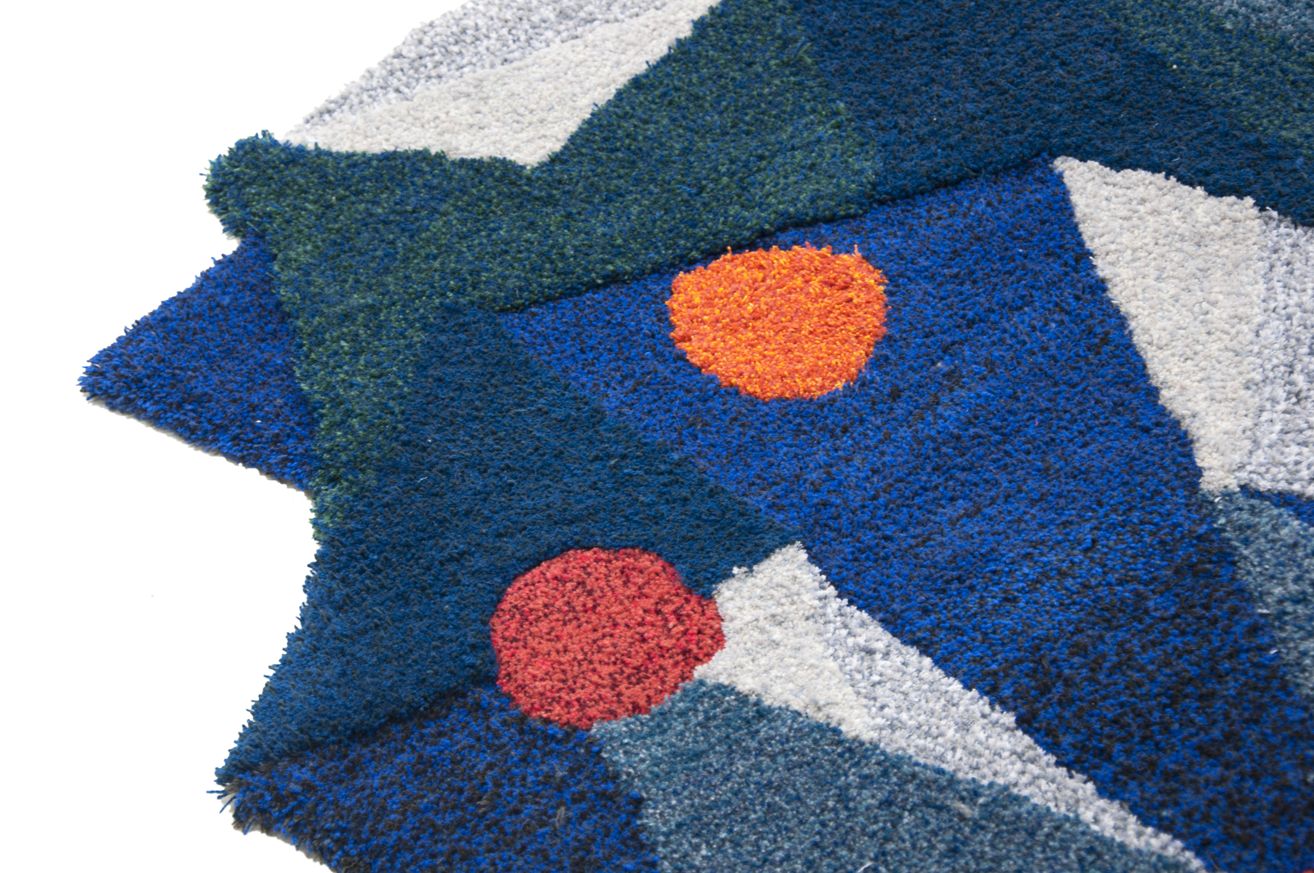 Geometrical shapes in contrasting colours. Imagining the orange and red rounded shapes as berries in the fall – giving the dark evenings a colorful pop.
